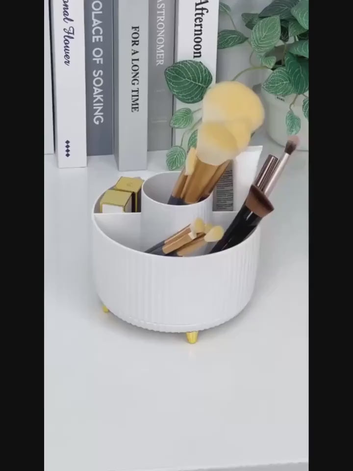 მბრუნავი ორგანაიზერი შეგიძლიათ გამოიყენოთ თქვენი მაკიაჟის ნაკრებისთვის. მოძრაობს ღერძის გარშემო 360 გრადუსით.